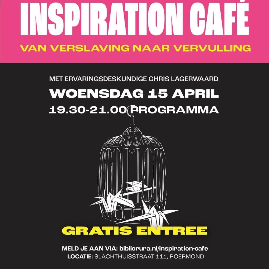 Hoe ontstaat een verslaving? Waar begin je als je hulp zoekt? En hoe geef je je leven opnieuw richting? Tijdens het Inspiration Café op woensdag 15 april staan deze vragen centraal. Je luistert naar een persoonlijk verhaal en krijgt nieuwe inzichten over omgaan met verslaving.